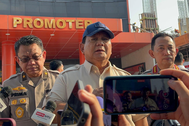 Presiden Prabowo Subianto usai menjenguk warga dan polisi korban demo ricuh yang dirawat di RS Polri Kramat Jati, Jakarta Timur